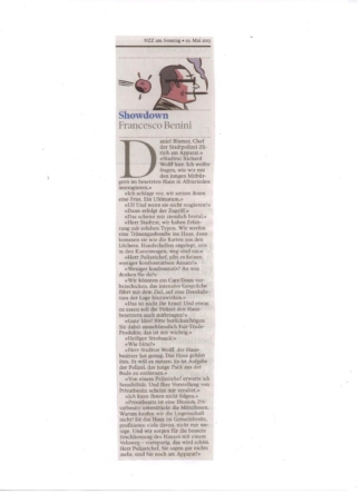 Daniel Blumer, Chef der Stadtpolizei Zürich am Apparat.» «Stadtrat Richard Wolff hier. Ich wollte fragen, wie wir mit den jungen Mitbürgern im besetzten Haus in Albisrieden interagieren.» «Ich schlage vor, wir setzen ihnen eine Frist. Ein Ultimatum.»